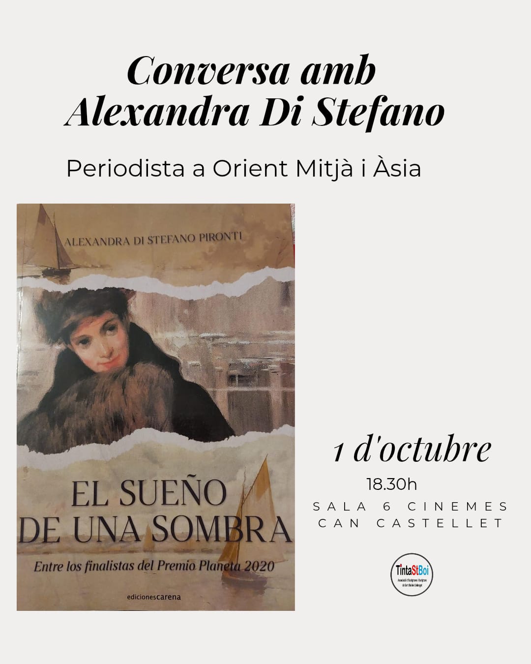 18:30 - 19:30 Conversa amb Alexandra Di Stefano octubre 1 a les 18:30 - 19:30 Conversa amb Alexandra Di Stefano Alexandra Di Stefano, periodista a Orient Mitjà i Àsia, ens presentarà la novel·la "El sueño de una sombra".
